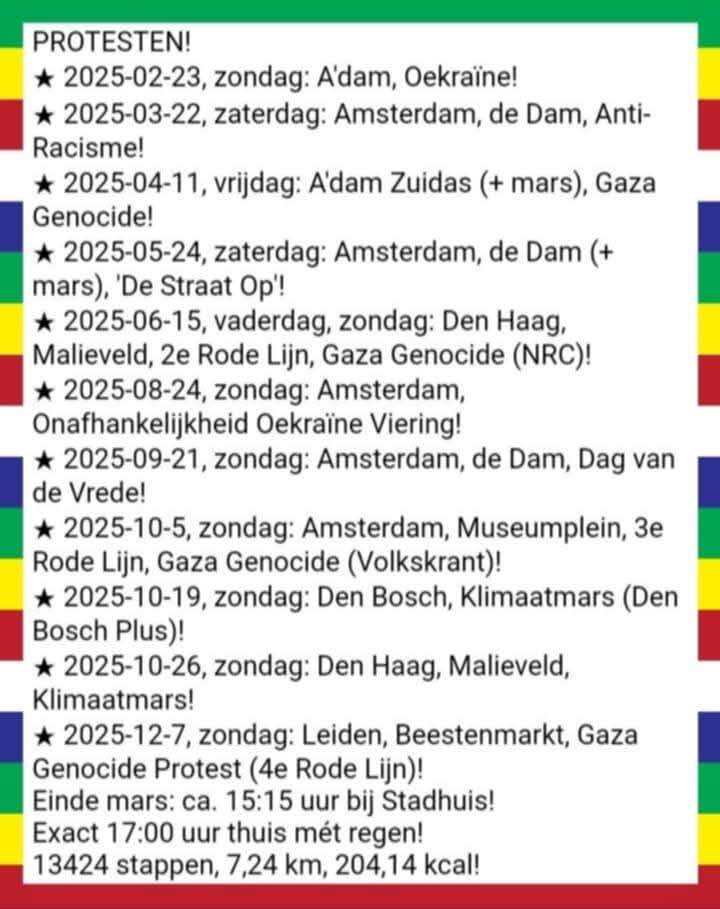 ★ 2025-12-7, zondag: Leiden, Beestenmarkt, Gaza Genocide Protest (4e Rode Lijn)!